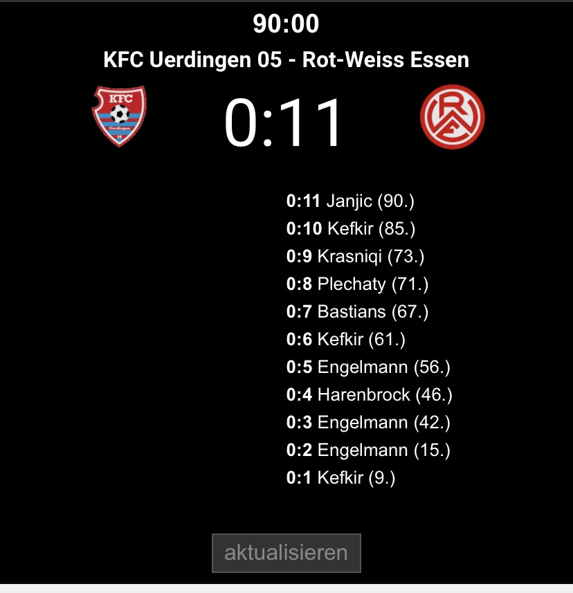 Bei uns endlich der erste Heimsieg. Konnte leider nicht dabei sein weil mein Sohn gespielt hat. Aber supererleichtert das gewonnen werden konnte. Wir haben da paar junge Kicker die sind richtig gut.