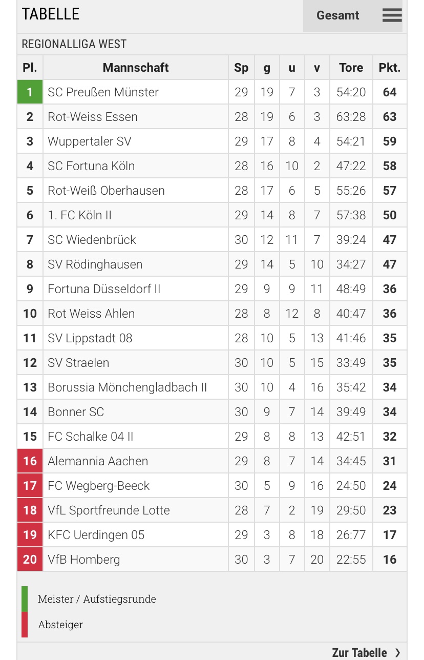 Bereinigte Tabellen in der Regionalliga West gibt es naturgemäß nie vor Mitte April.