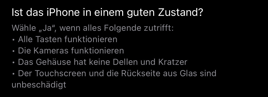 Hat jemand Erfahrung mit dem Apple Trade In Programm? Wie kulant sind die? Mein 11Pro hat einen kleinen, aber sichtbaren Kratzer auf dem Displayglas. Ansonsten kann ich eigentlich alle Fragen mit „Ja“ beantworten. Ladegerät und Kabel hab ich nicht mehr. Ach und der Lightning Port geht nicht mehr. Wollen die aber gar nicht wissen. Bin unsicher - auch was die Abwicklung angeht. Daher die Frage nach Erfahrungen.