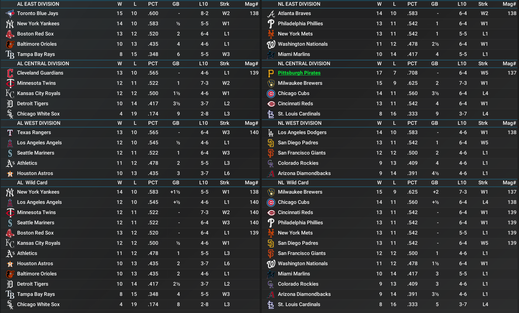 Bei mir sind es tatsächlich die Rockies geworden. Mit einem Record von 43-119 in der abgeschlossenen Saison eines der schlechtesten Teams aller Zeiten. Der Owner ist nicht sehr spendabel, aber dank der soliden Marktgröße kann ich zurzeit mit einem Budget von $190 bis 196m rechnen. Das ist zwar noch immer Platz 26 von 30 in der Liga (nur die Marlins, Rays, Pirates und Athletics haben weniger Geld zur Verfügung), aber da ich mich sowieso im Rebuild befinde, habe ich zurzeit sowieso keine Spieler, denen ich Verträge anbieten müsste.