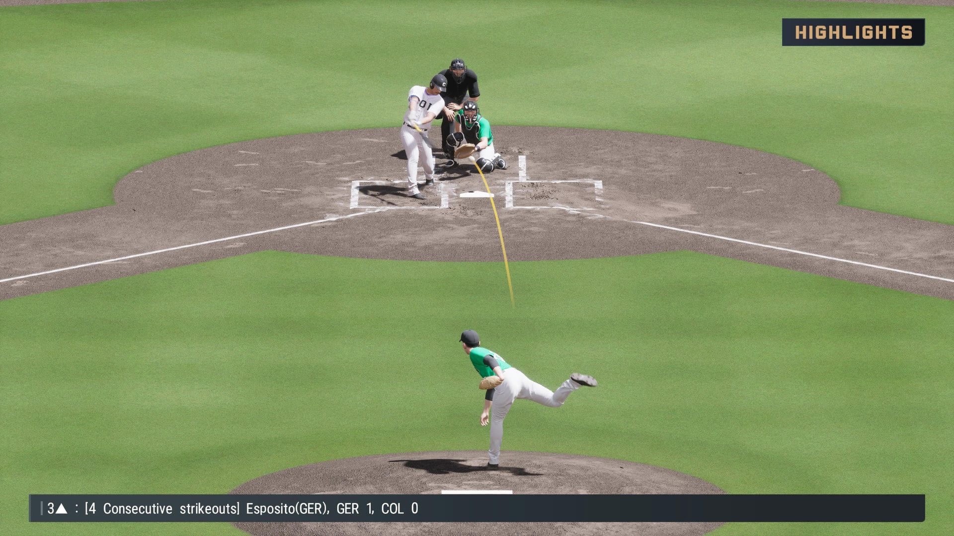 Insgesamt finde ich es sehr cool, dass hier wirklich Wert auf Strategie gelegt wurde. Ich kann nicht mit Sicherheit sagen, ob das z.B. so auch in The Show umgesetzt ist. Zudem gibt es hier deutlich mehr verschiedene Pitches. Ich habe schon einen Eephus gesehen, Slider werden manchmal in Slider und Power Slider unterteilt, Sweeper, Curve, Sinker, Power Sinker, Fastball, 2 Seamer, Cutter usw. Das Pitch Arsenal ist insgesamt größer, was in der Regel in der Realität bei japanischen Pitchern (und Konami hat sich hier ganz klar an den eigenen Markt orientiert) auch der Fall ist. Das macht es übrigens auch als Batter bedeutend schwieriger, die verschiedenen Pitches zu erkennen.