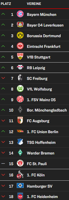 Das kurze Hoch, dass Dortmund glücklich noch in die CL gespült hat ist schon wieder vorbei. Sie finden sich nach der Hinrunde wieder im niergendwo. Auch leverkusen hat durch den Umrbuch eine schwere Saison vor sich,