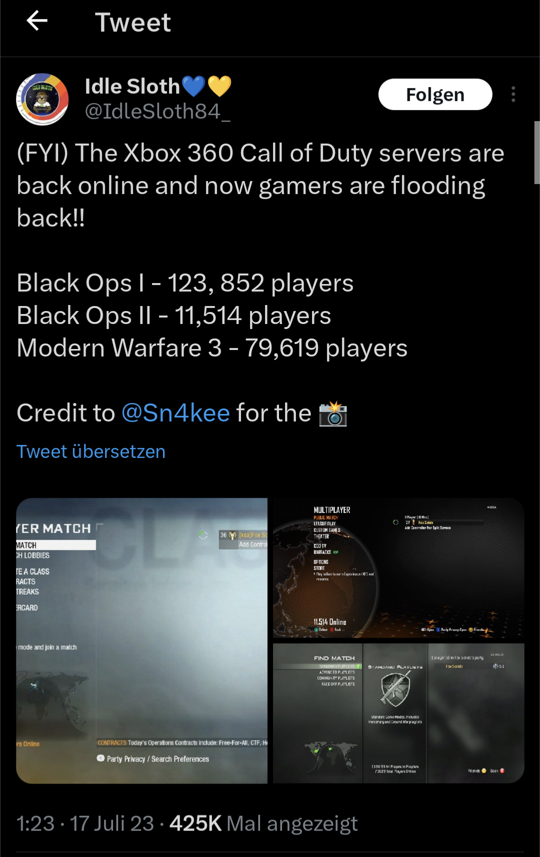 Auf der Xbox sind paar alte CoD Server wieder angeworfen worden und das ist da los.