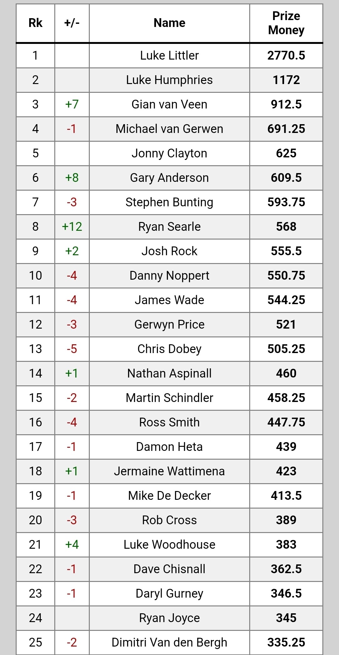 Sieht man auch an der neuen Weltrangliste, die dank der neuen Gelderverteilung seit dieser WM komplett verzerrt ist. Littler bräuchte, wenn es nur um die Rangliste ginge, eigentlich bis zur nächsten WM nicht mehr zu spielen.