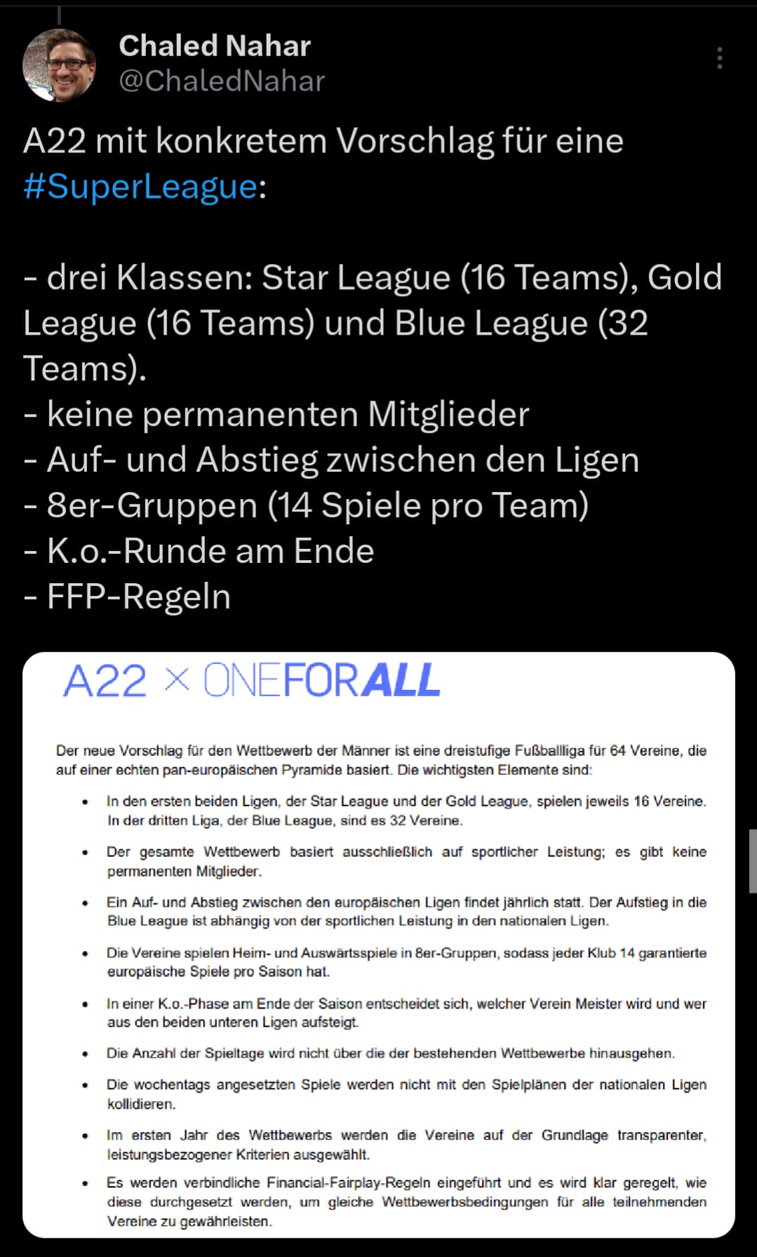 um 12 Uhr gibt es direkt eine PK von A22 der Beratungsfirma hinter der Super League mit dem aktuellen Youtube Titel „Live: Proposal of new European football competition“ und der Beschreibung: