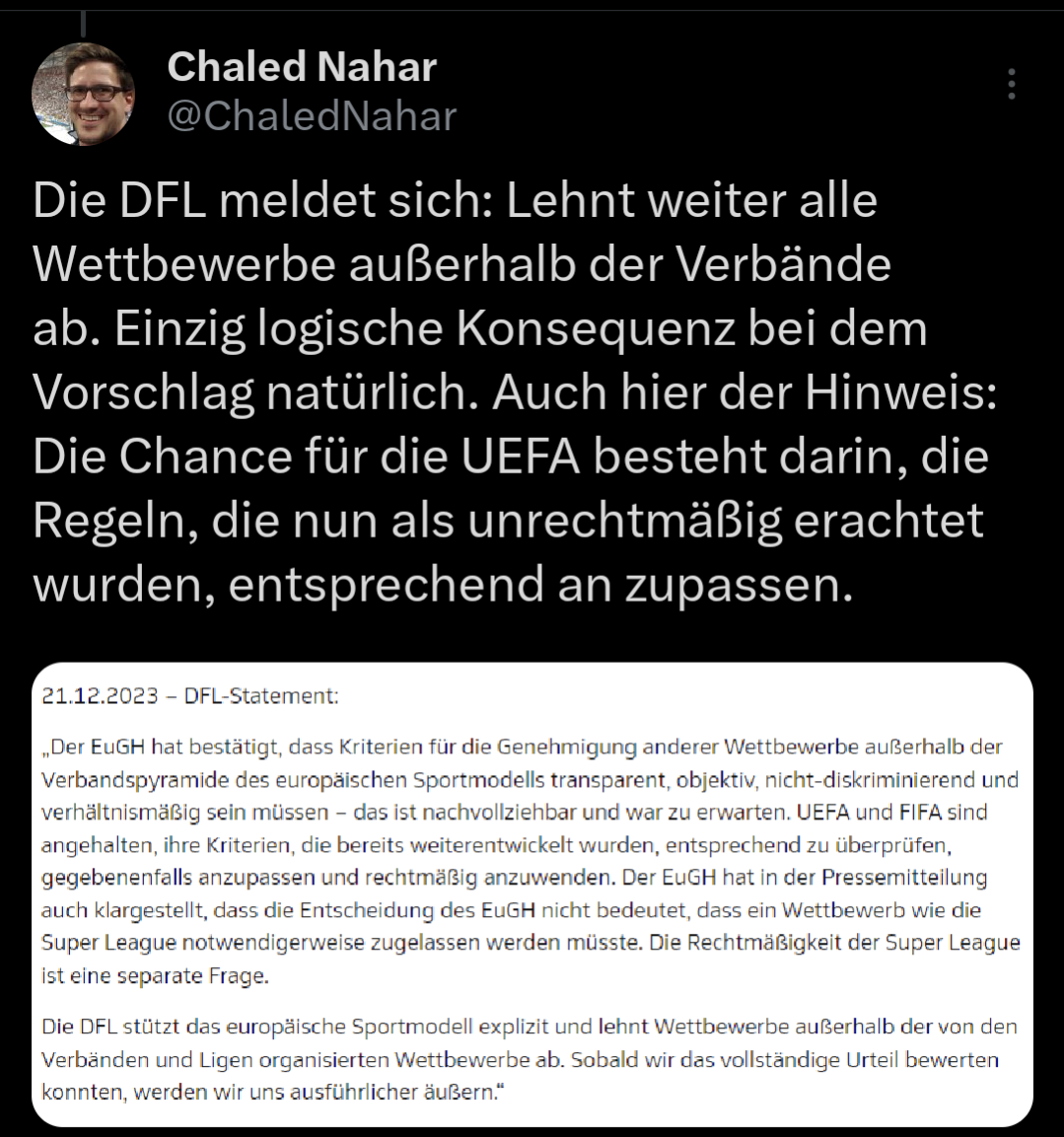 Mal schauen, ob Barca und Real das jetzt demnächst wieder aufgreifen. Ein wirklicher Lerneffekt ist ja damals trotz großem Aufschrei nicht eingetreten.