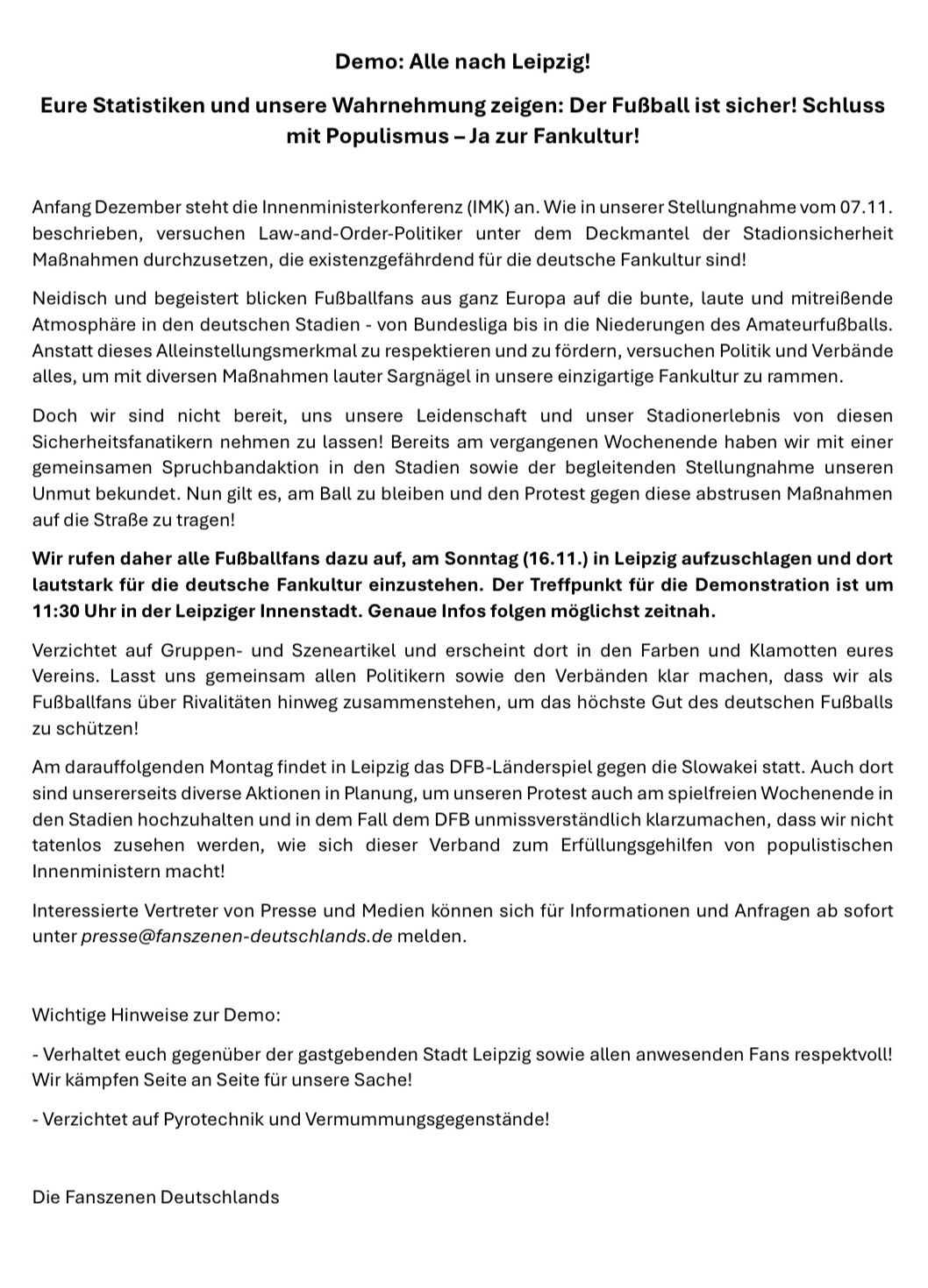 Genauso kann die Gegenseite argumentieren, dass da jetzt 100 Fanszenen in Leipzig für eine gemeinsame Sache friedlich nebeneinander laufen können, während jede Woche natürlich weiterhin Mist in den Stadien passiert.