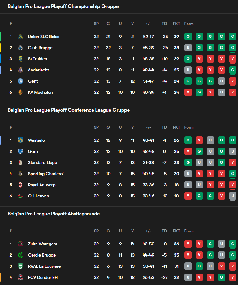 Dafür ist die Meisterschaft spannend und St. Gilloise und Brügge trennt gerade mal ein Punkt.