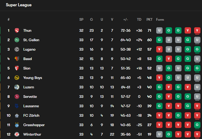 Schweiz: Wird schwer für Thun das zu verspielen, aber sie arbeiten dran