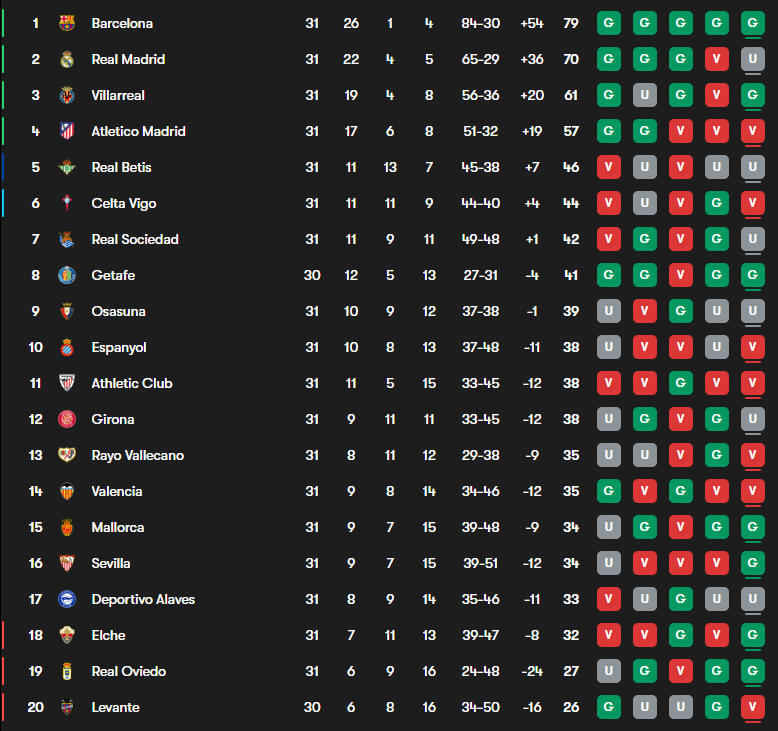 Auch in Spanien ist die Meisterschaft mit 9 Punkten Vorsprung für Barcelona quasi entschieden.