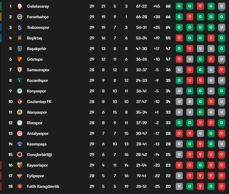 Die Türkei erlebt einen spannenden Kampf zwischen Gala und Fener. Trabzonspor auch noch mit Außenseiterchancen.