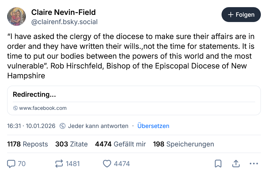 Die Situation um die ICE Gestapo in Amerika eskaliert derweil weiter, in Minneapolis wurde eine Frau durchs Seitenfenster mit drei gezielten Schüssen hingerichtet. Während die Regierung versucht, das Ganze als rechtmäßig zu framen, während jeder in Videos sehen kann dass es nicht so war, versuchen Politiker vor Ort zu deeskalieren, betonen aber gleichzeitig, dass diese Schergen raus aus der Stadt müssen (Bürgermeister Frey: „To ICE: Get the fuck out of Minneapolis“). Andere Bürgermeister wie Chicago solidarisieren sich, Demokraten rufen zum Widerstand auf. Bekommt Trump den Bürgerkrieg, den er wahrscheinlich will, um „durchgreifen“ zu können und innenpolitische Probleme, Epstein etc. nach hinten zu schieben? Kein Ende des Wahnsinns in Sicht.