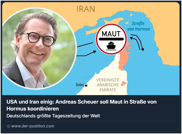 Dieselpreis auf Rekordhoch. Wer hätte gedacht dass die neue Preisregelung nach hinten losgeht, außer alle. Die Unfähigkeit ist grenzenlos. Wäre Habeck noch Wirtschaftsminister würde die BILD zur öffentlichen Kreuzigung aufrufen. Aber ist ja die Frau vom Guttenberg, also alles gut. Dass die Bauernproteste ein politisches Vehikel von CDU-Funktionären gegen die Ampel waren, kann man auch schön sehen. Bzw. nicht sehen. Keine Traktoren auf den Straßen. Keine Güllehaufen in Berlin. Also nicht mehr als sonst schon. Die Scheinheiligkeit ist größer als alle fossilen Preise zusammen.