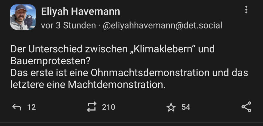 Land lahmlegen gerne, für Klima, für Akzeptanz von Minderheiten, für Kinder, Schulen, Pflegekräfte, gegen Antisemitismus, ABER DOCH NICHT DAFÜR IHR BESCHISSENEN IDIOTEN!