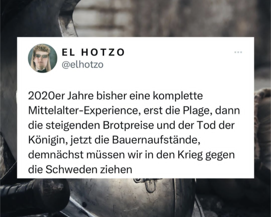 Ist noch zu früh für sarkastische Bauern auf der Straße, Kaiser tot, ich fühl mich wie im Mittelalter Sprüche?