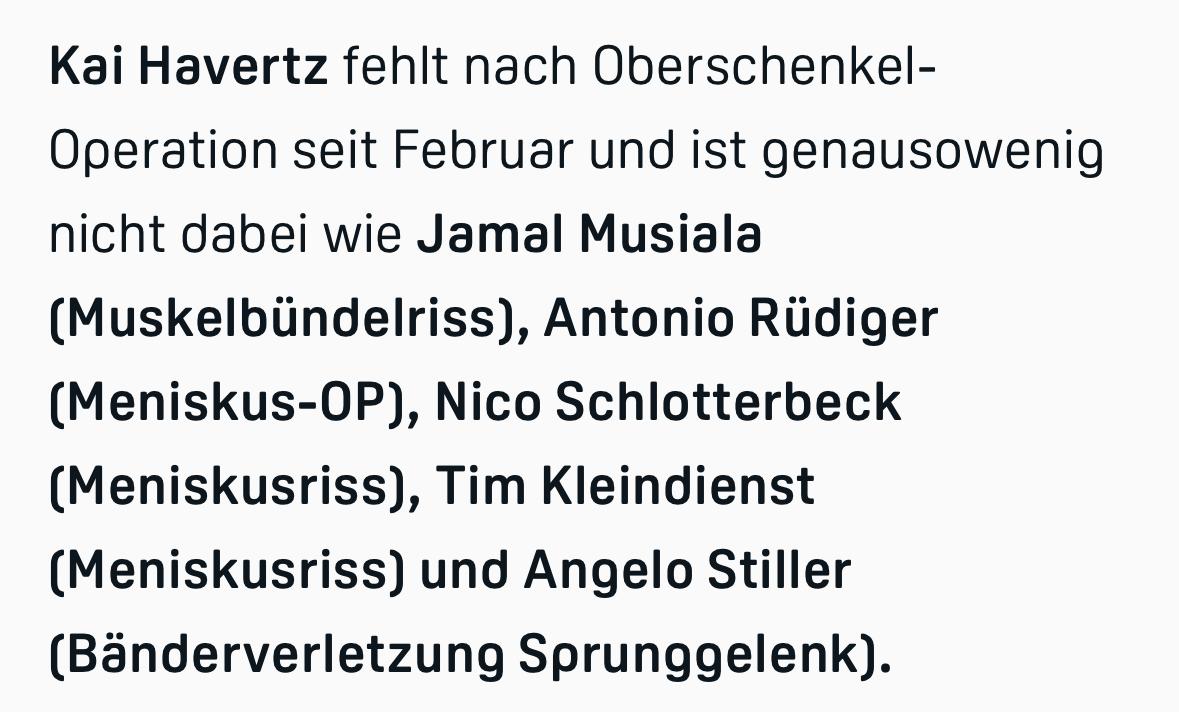 Nagelsmann hatte anfangs noch frischen Wind reingebracht, aber er driftet nun schon wieder in den gleichen Fehler hinein, wie damals in München, als er auch Konsequenz auf den 95er Block um Goretzka, Sané und Gnabry setzte. Klar fehlen einige Spieler, aber dann gebe ich anderen jungen und hungrigen Spielern die Chance.
