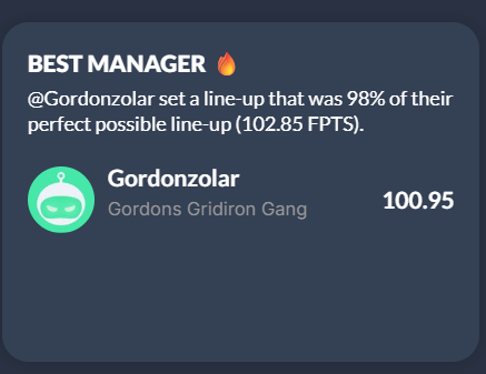 Das schlimme ist vor allem, dass er das nur gewonnen hat, weil er den Autosub nicht angenommen hat. Ich hatte Lockett für London ausgewählt. Keine Ahnung was ich da falsch gemacht habe.