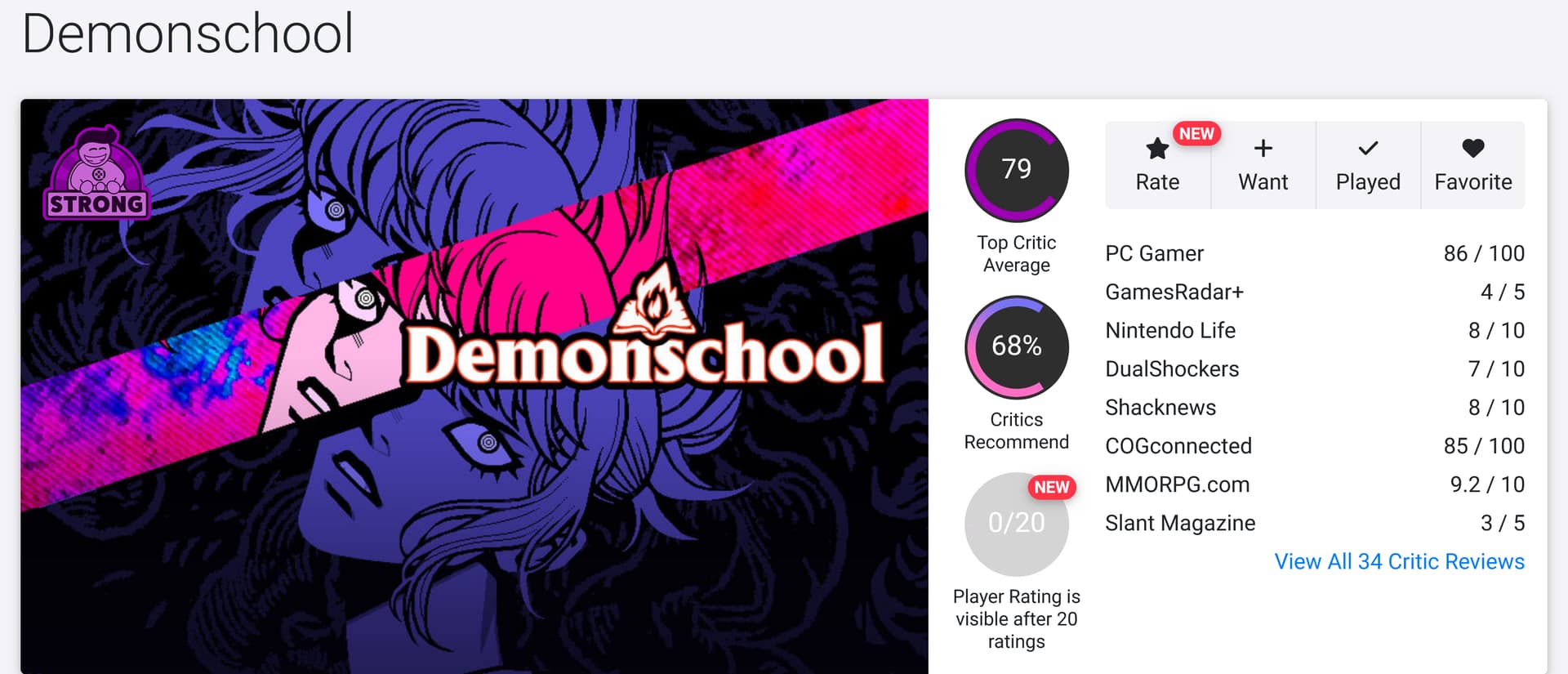 Und dann wird Demonschool wahrscheinlich noch ein Punkt abgezogen.