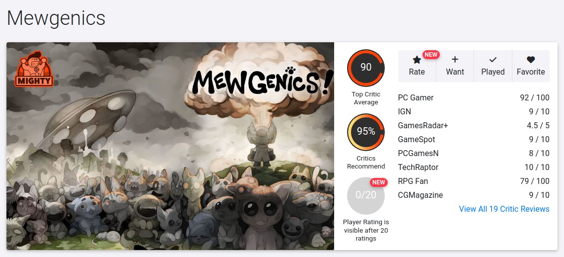 Eigentlich ein No-Brainer. Selbst wenn es nur ein kleiner DLC werden wird, wird der eine Grundqualität haben, die dafür sorgt, dass der Score niemals unter 80 fallen wird, und das ist noch konservativ geschätzt. Bei Team Cherry muss man natürlich damit rechnen, dass der DLC hier in einem Jahr erneut gedraftet wird, aber so zynisch wollen wir jetzt mal nicht sein. Prognose: 87