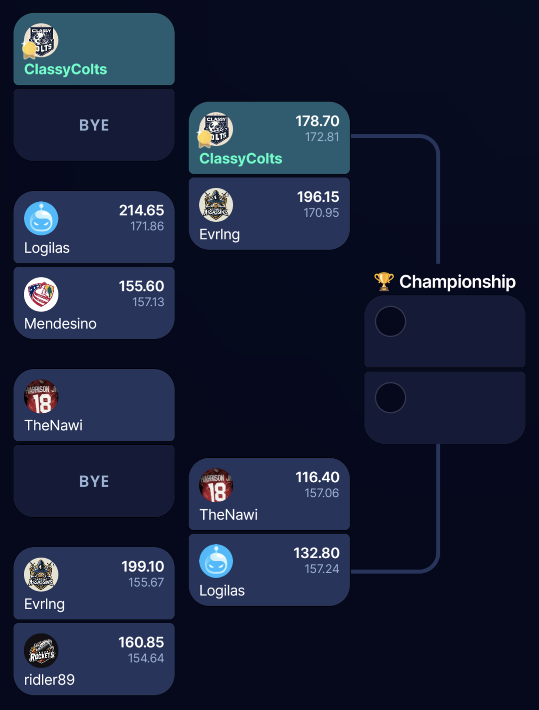 Und ab da war es dann auch recht eindeutig. In der Wildcard Round 199,10 Punkte gegen Ridler. Im Halbfinale 196,15 Punkte beim Wiedersehen gegen Colt, inklusive 43,85 Punkten von Purdy. Im Finale 212,55 gegen Logilas. Drei Play-off-Spiele, drei Siege, 607,80 Punkte. Das ist ein Team, das rechtzeitig in Form war und dann einfach durchmarschiert ist.