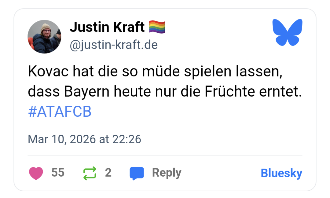 Was Kompany für ein sympathischer, toller Trainer ist, welch ein Gewinn für die Bayern. Kann mich nicht an so eine großartigen Typen auf der Bayern Bank seit Hitzfeld/Heynckes erinnern.