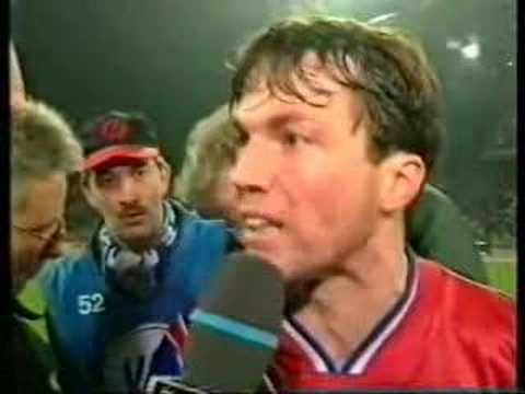 ich keine Ahnung hatte, wie er das gemacht hat. Aber die ganzen 90 Minuten müsste man eigentlich posten, das war ja nur der Anschlusstreffer, zuvor hatte Olaf schon einmal getroffen und nen Elfer verschossen und später hatte Schjönberg mit einem Doppelpack das Ding noch zum 4:3 gedreht. Und damit war es wahrscheinlich noch nicht mal in den Top10 der Betze-Spiele in den 90ern. Scheint heute aus einer anderen Dimension…