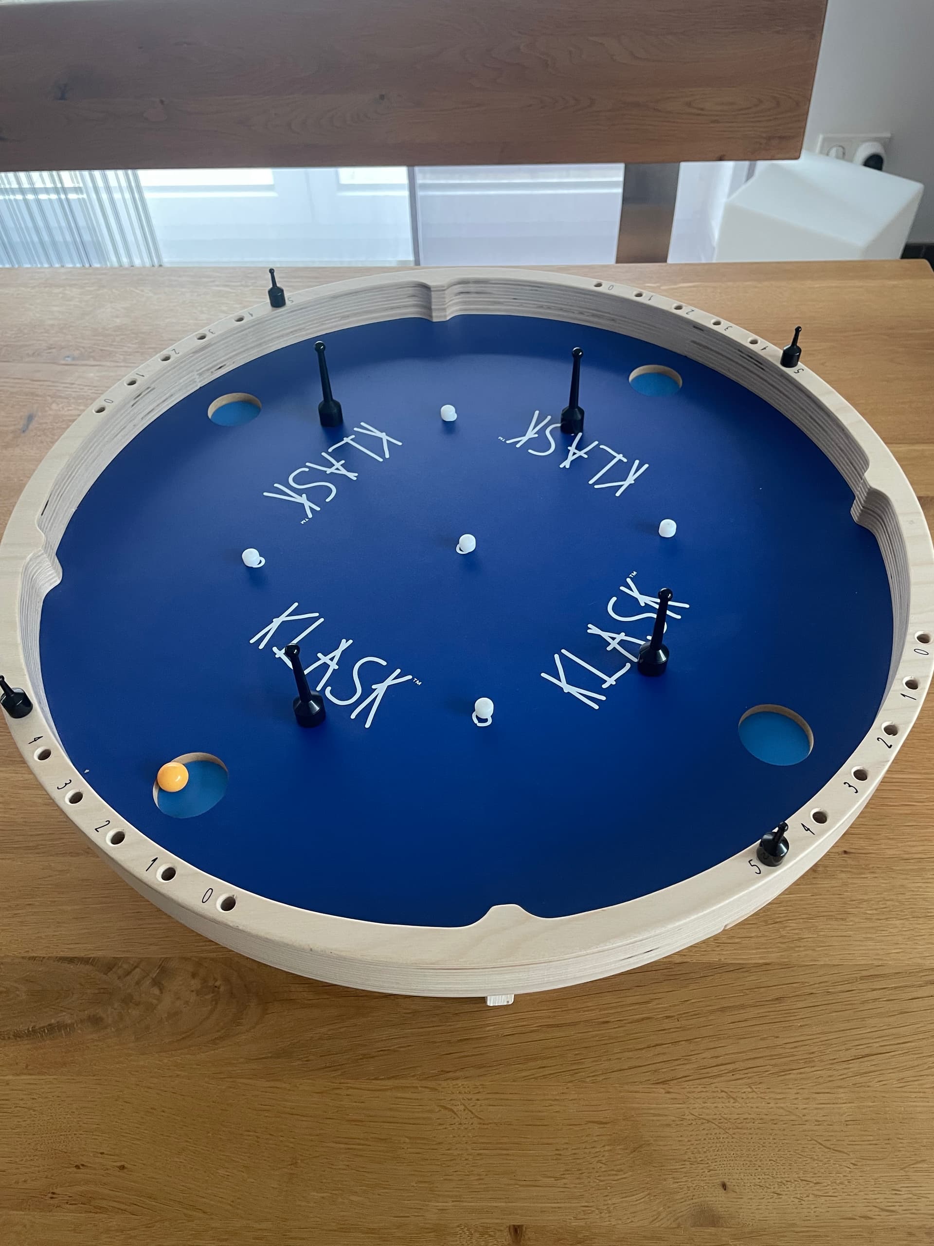 Dänisches Tischfußball, streng genommen eine andere Kategorie weil man mit Magneten versucht, den Ball ins gegnerische Loch zu versenken. Zusätzlich gibt es weiße Magnetsteine, denen man ausweichen muss, denn zieht man zwei von denen mit dem eigenen Magnet an zählt das wie ein Gegentor. Die klassische Variante ist für zwei Spieler, aber wir bevorzugen die runde Vierspielervariante für noch mehr Chaos. Macht immer Laune.