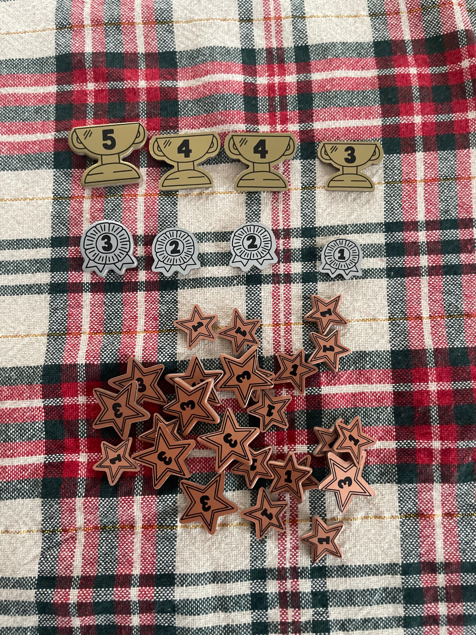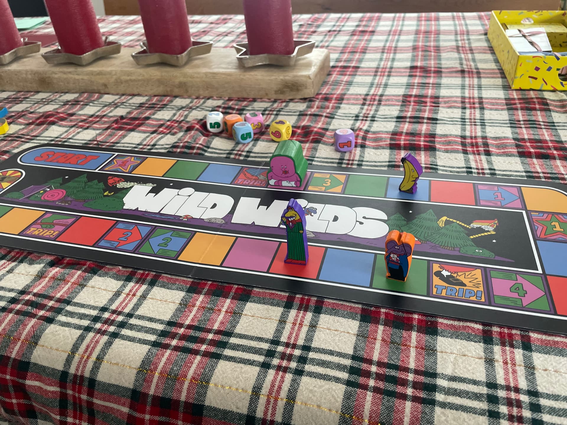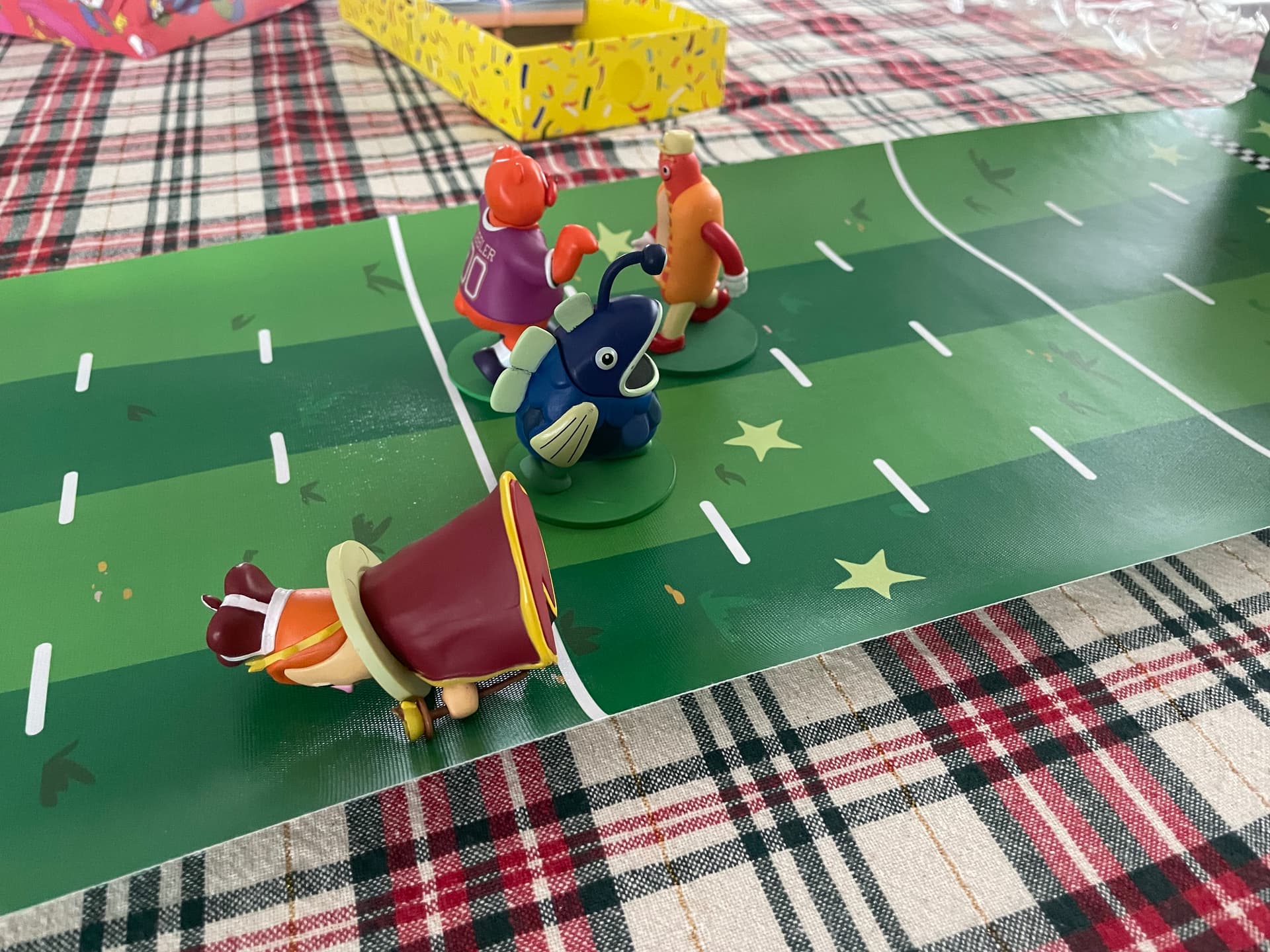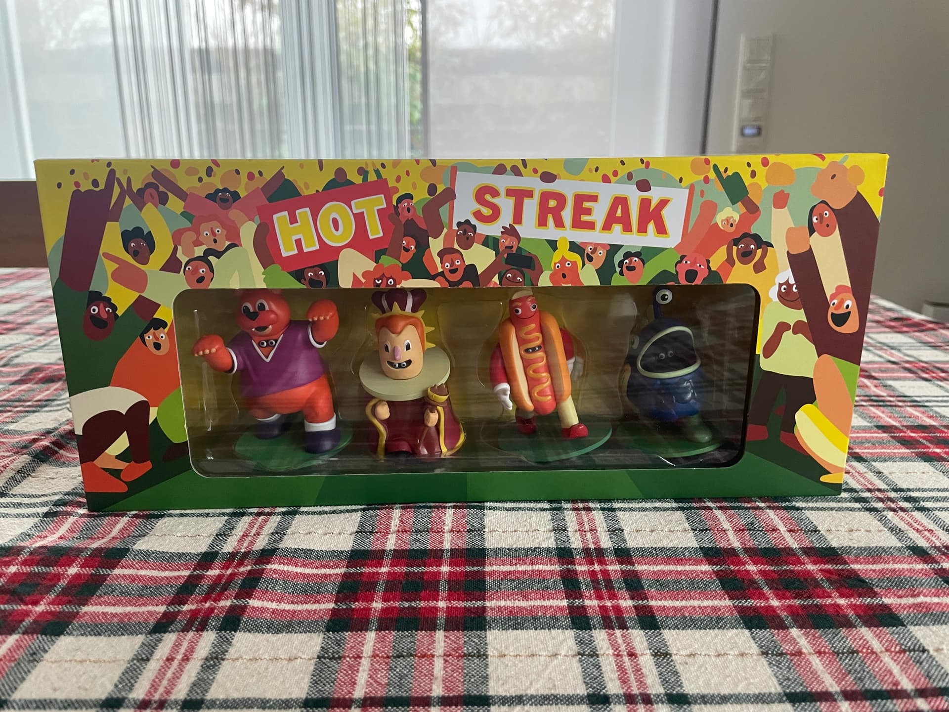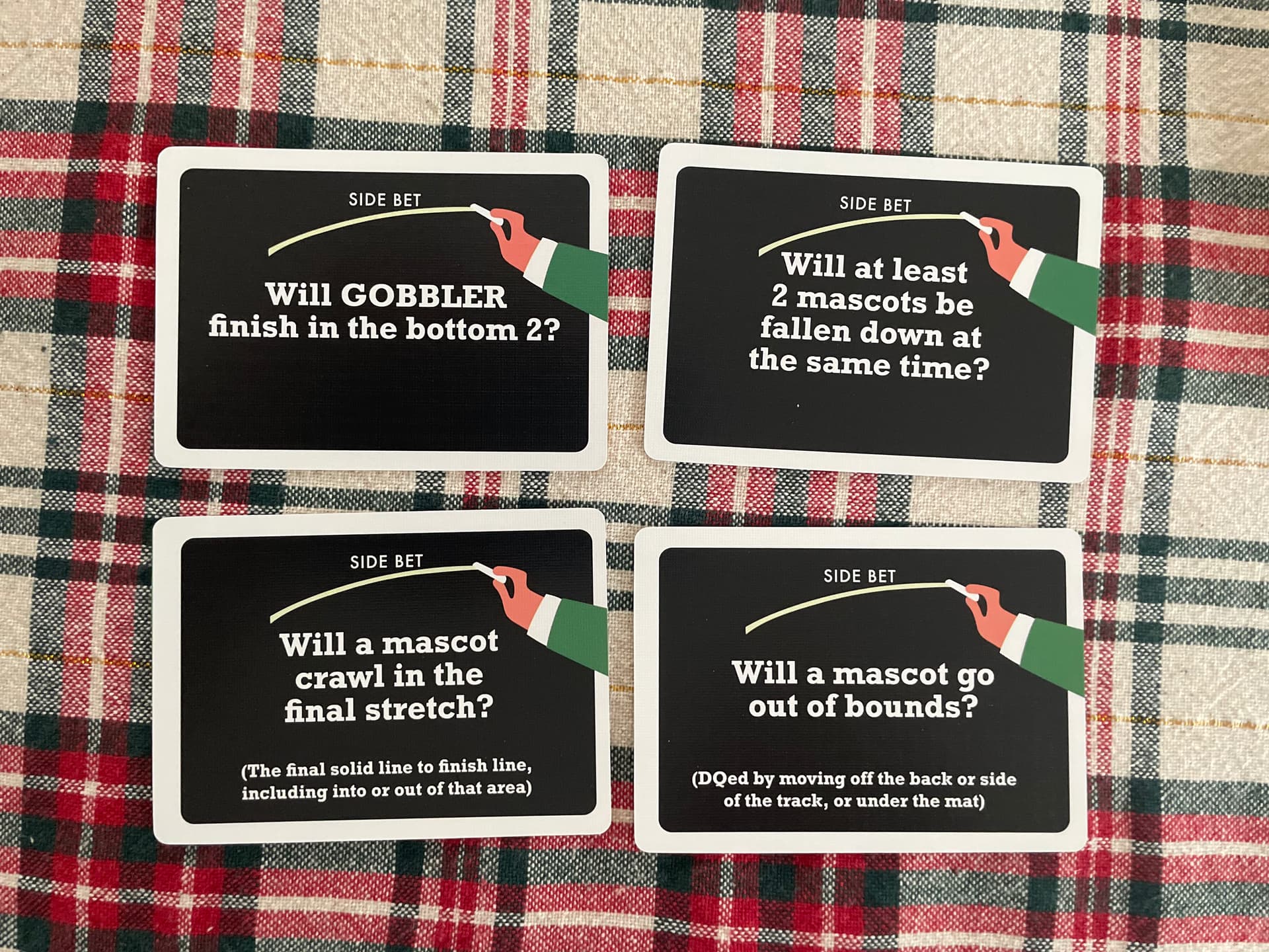 In Hot Streak laufen 4 Maskottchen um die Wette und alle Spieler wetten auf deren Platzierung. Ich entschuldige mich jetzt schon mal für die Tischdecke, aber wenn ich die Weihnachtsdeko abräume hab ich ganz andere Probleme.