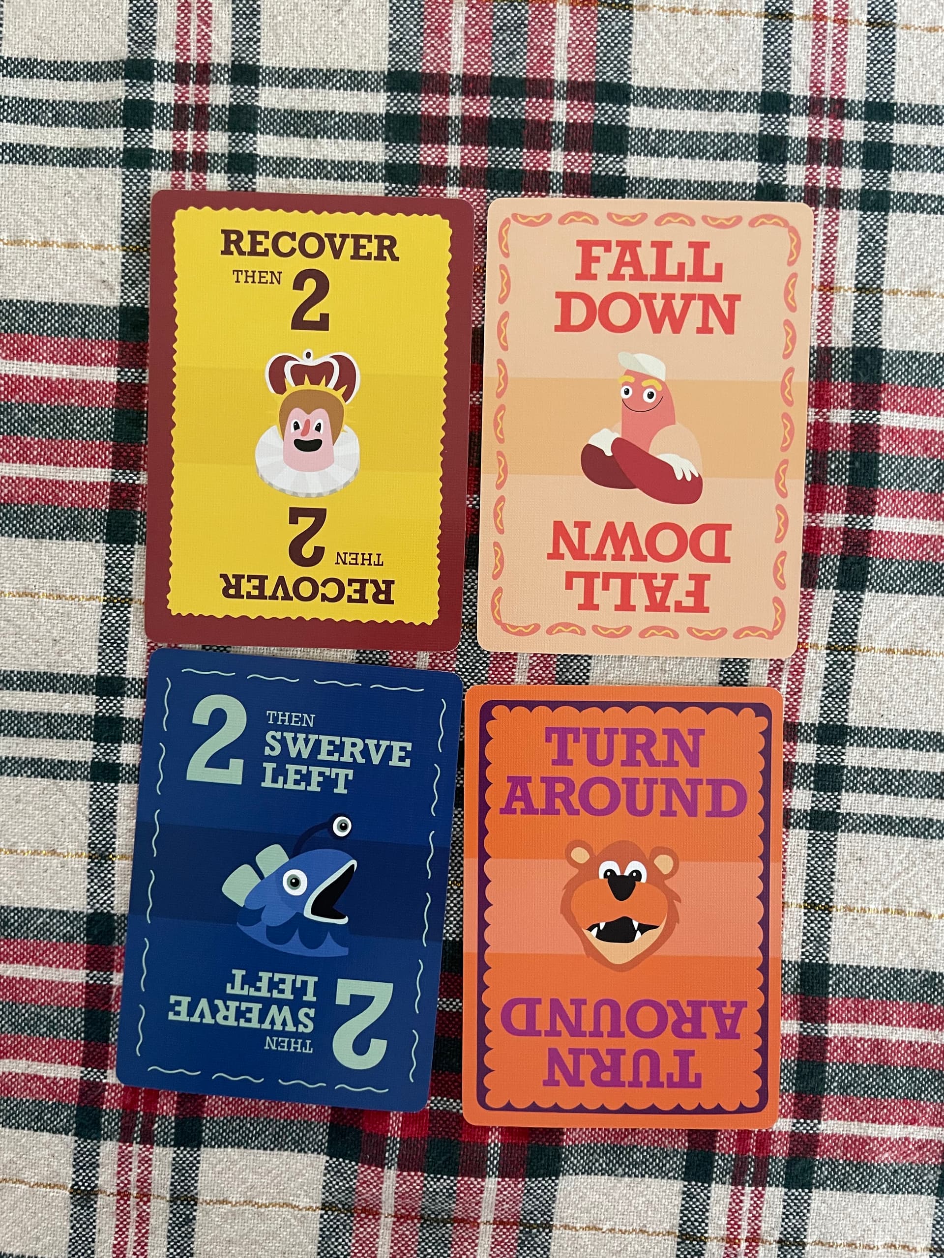 Zuerst fällt das coole Design auf. Die 4 Figuren sind herrlich gestaltet und das Spielfeld wird einfach hinten aus der Verpackung gezogen. Die Figuren laufen dann mit Bewegungskarten bis zur Ziellinie, aber drehen sich auch mal um, stolpern, laufen ineinander, es ist ein herrlich verrückter Spaß.