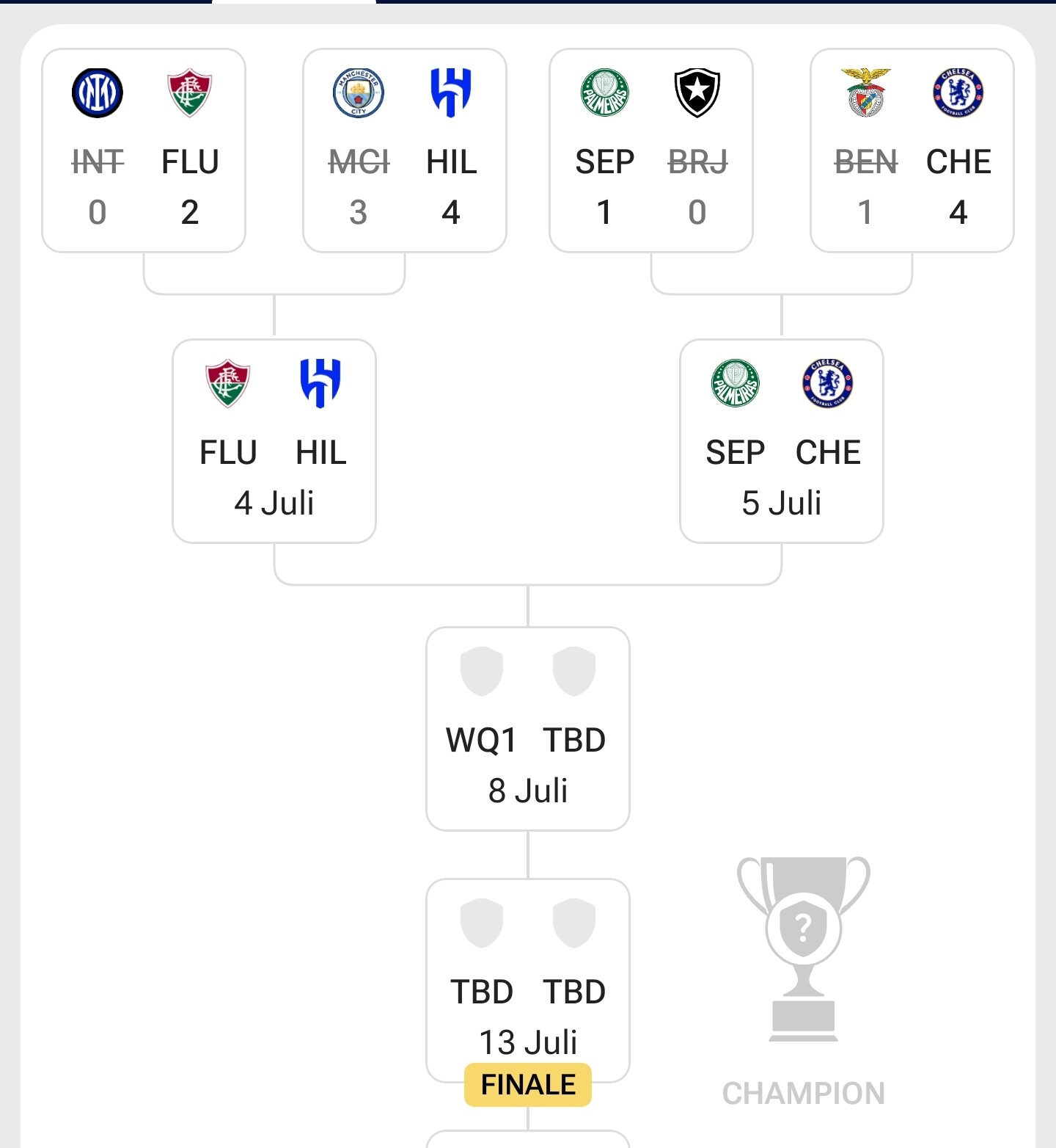 Chelsea darf dann auch gerne im Viertelfinale verlieren, dann ist die Seite des Turnierbaums von Europa befreit.