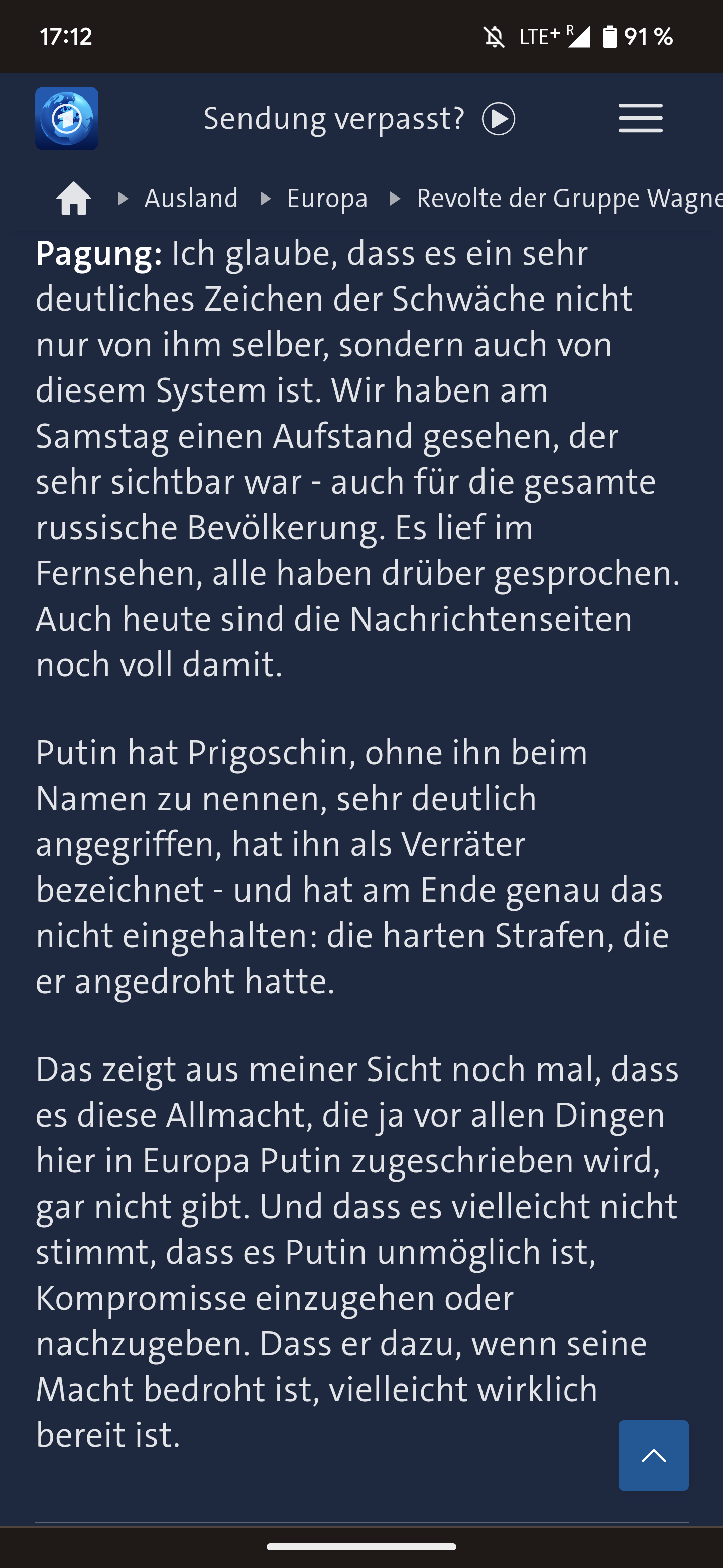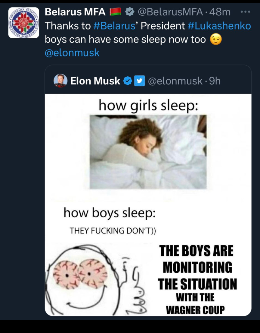 Mir fehlt da allerdings irgendwie die Fantasie, warum man das hätte SO inszenieren sollen. Russland hätte doch jederzeit Wagner nach Belarus verlagern können, wenn man das gewollt hätten.