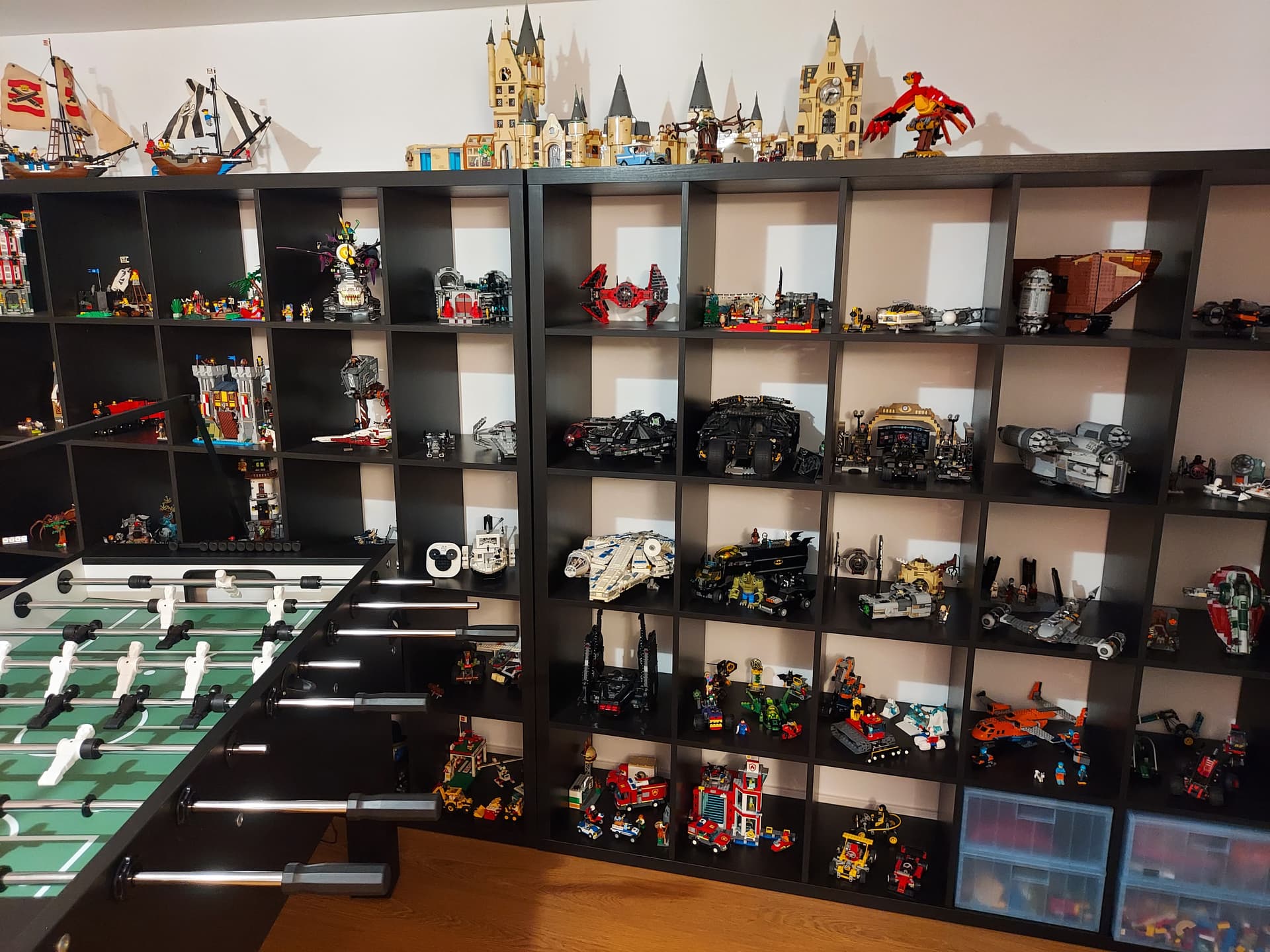 Man spricht ja manchmal von den so genannten dark ages, also die Zeit, in der man sich nicht für Lego interessierte. Das ging bei mir von ca. 1997 bis 2015. Rückwirkend betrachtet ist das wohl ein ganz guter Zeitraum gewesen. Klassische Geschichte, das ganze Lego war noch im Elternhaus, die wollten aufräumen, „Willste das noch oder kann das weg?“. Dabei habe ich die alten Schiffe entdeckt (oben links auf dem Schrank) und es kam direkt Nostalgie auf. Über bricklink die fehlenden Teile bestellt, wieder zusammengebaut und zack, zum AFOL geworden. Auch auch hier geht’s klassisch weiter: viele spannende Sets verpasst, z.B. nahezu alles bei Star Wars. Jetzt aber alt genug und mitten im Leben, sodass einzig die Vernuft den Kaufrausch bremsen kann (zumindest mehr oder weniger). So ging das etwa 7-8 Jahre lang, alles nachgekauft was man meinte verpasst zu haben und bei den neuen Dingen zugeschlagen. Insgesamt haben wir in der Zeit um die 15.000€ in Plastiksteinchen versenkt, davon 40% aufgebaut, der Rest wartet noch.