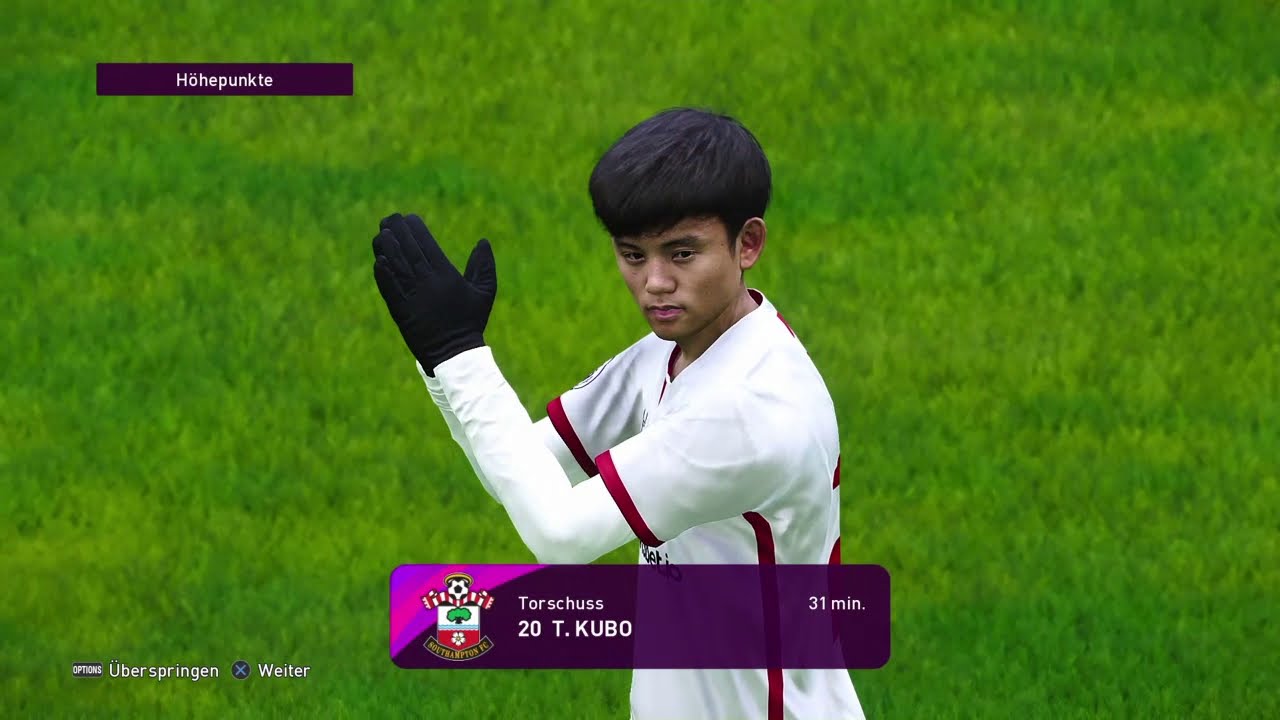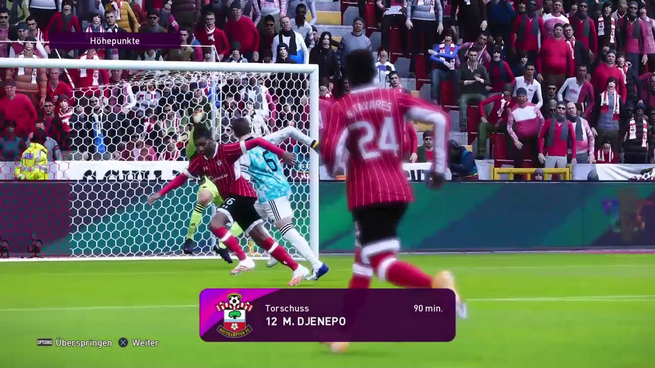 Schema: Southampton: Gunn - Walker-Peters, Vestergaard, Salisu, Bertrand - Ward-Prowse - Kubo, Golovin (76. Boufal), Djenepo - Andia (66. Ings), Isak Tottenham: Reina - Aurier (81. Pavlovic), Foyth, Sánchez, Rose (71. Doherty) - Ndombèlé, Winks - Lucas Moura, Sissoko, Son - Kane Tore: 0:1 Lucas Moura (5.), 0:2 Kane (41.), 1:2 Ward-Prowse (49.), 1:3 Ndombèlé (55.), 2:3 Walker-Peters (61.), 2:4 Kane (74.), 2:5 Lucas Moura (81.)
