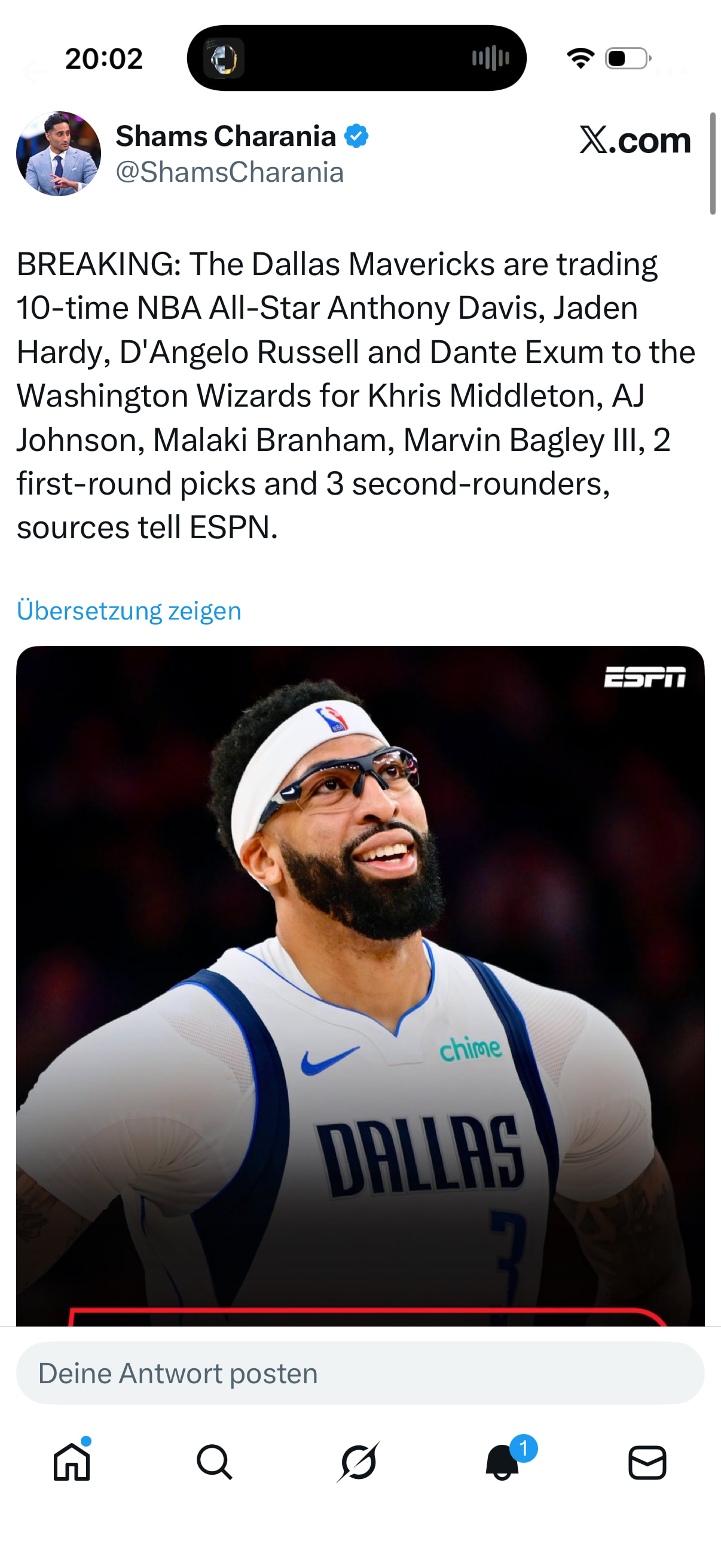 Die Mavs können doch jubeln, dass sie den halb Invaliden Davis mit riesen Gehalt von der Payroll haben und dafür sogar noch 5 Picks, davon 2 1st Rounder, bekommen haben, um ab jetzt konsequent das Team langfristig um Cooper Flagg aufzubauen.
