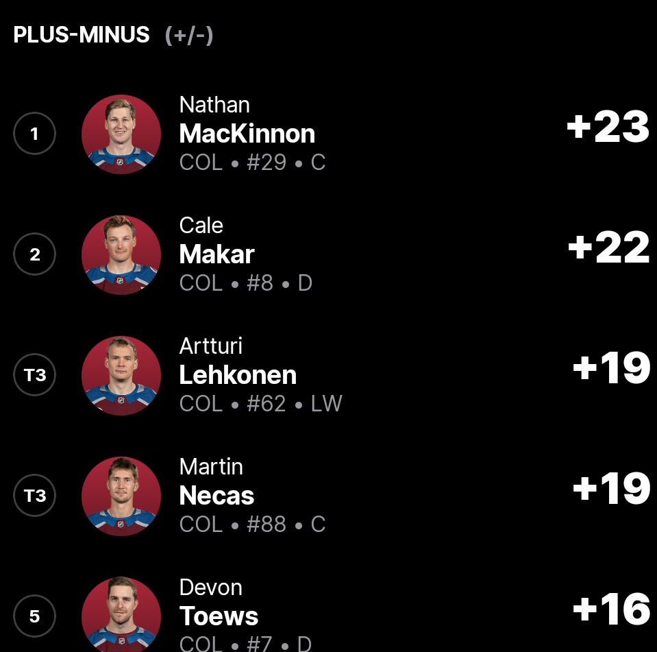 Zum Schluss noch die Top 5 der Plus/Minus Statistik der ganzen Liga: