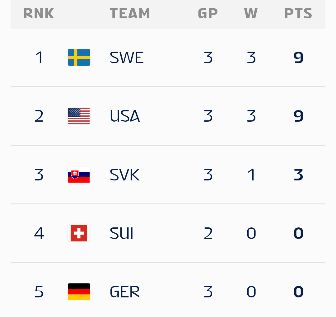 Wie zu erwarten steht Deutschland nach den ersten 3 Spielen mit 0 Punkten da. Die Schweiz erwartungsgemäß nach den Spiele gegen die USA und Schweden auch. Heute zur Primetime kommt es also zum vermutlich mal wieder entscheidenden Klassiker darum wer in die Relegation muss.