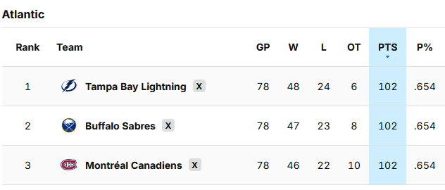 Tampa, Buffalo und Montreal stehen in der Atlantic Division bereits als Playoff Teilnehmer fest.