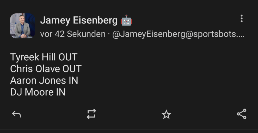 Olave und Tyreek auch noch Gametime Decisions. ![]()