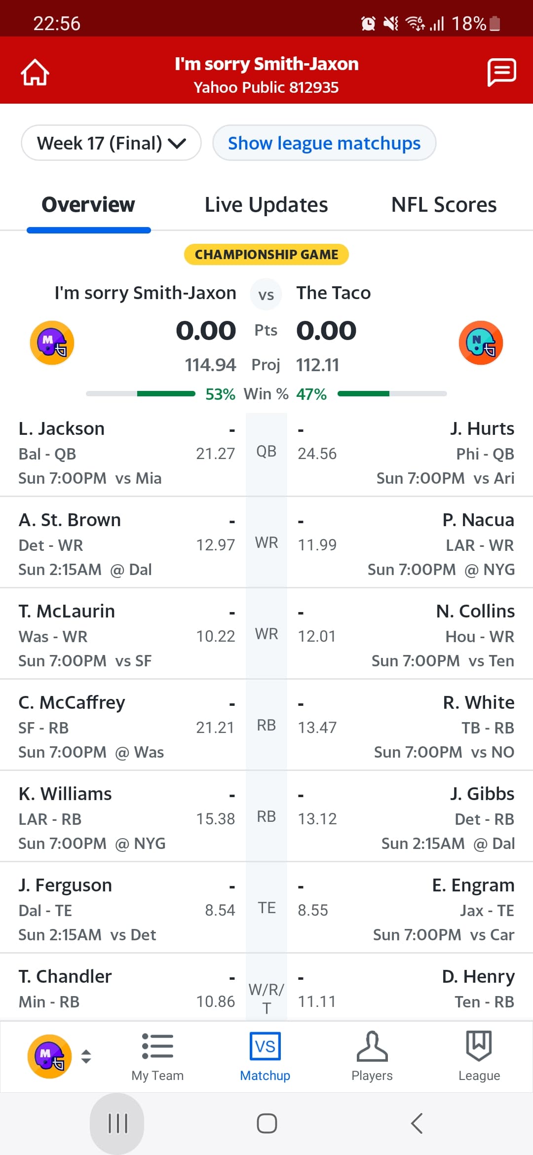 Wie geht es eigentlich, dass der Johnson noch immer 0 Punkte projected hat? Der hat doch ganze Saison gepunktet. Diese projections sind echt das nervigste am FF.