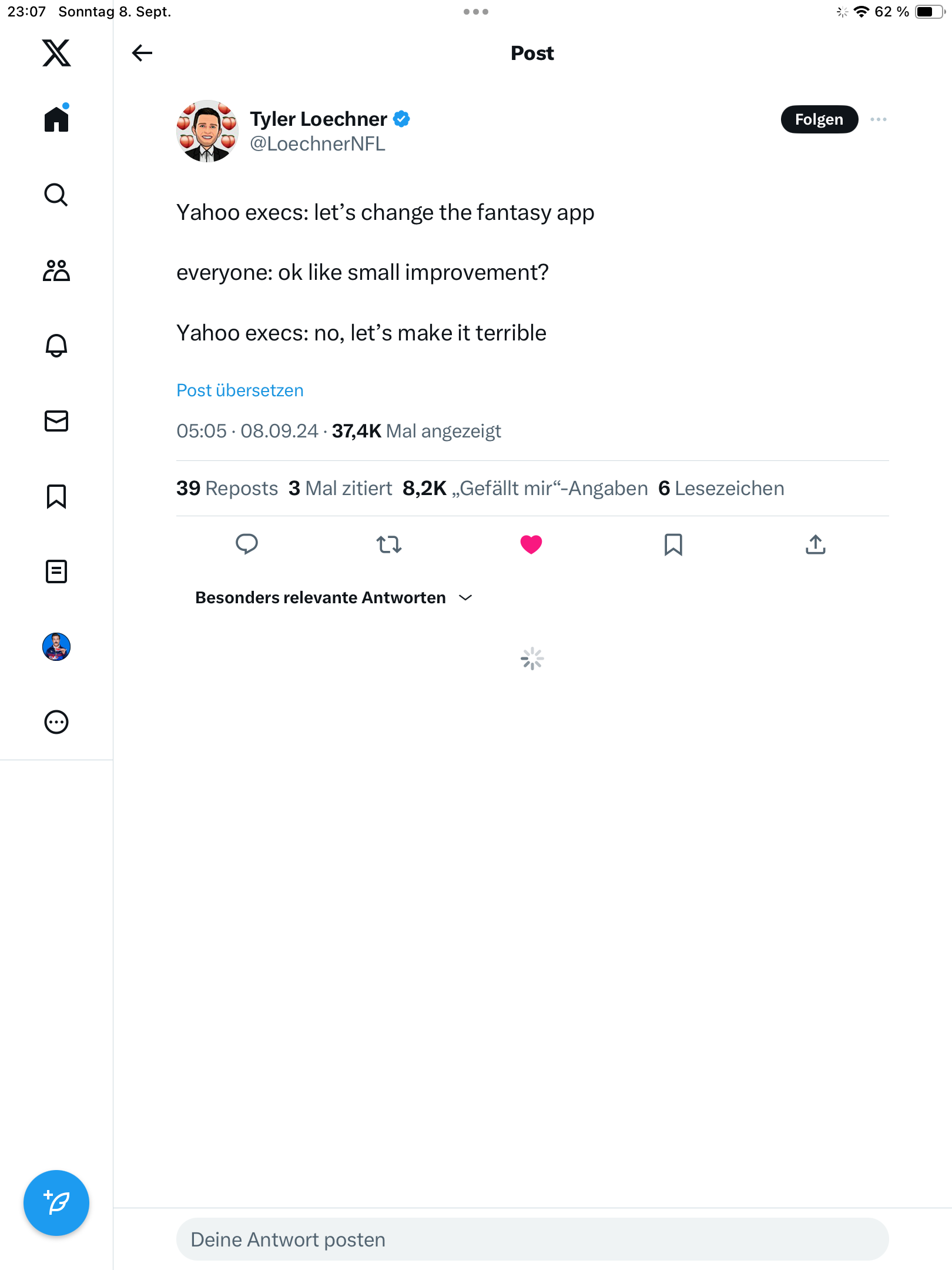 Bezeichnend dass ich mich am ersten Fantasy Montag am wohlsten fühle weil ich die Blender McLaurin und Drake London in allen Drafts vermieden habe.