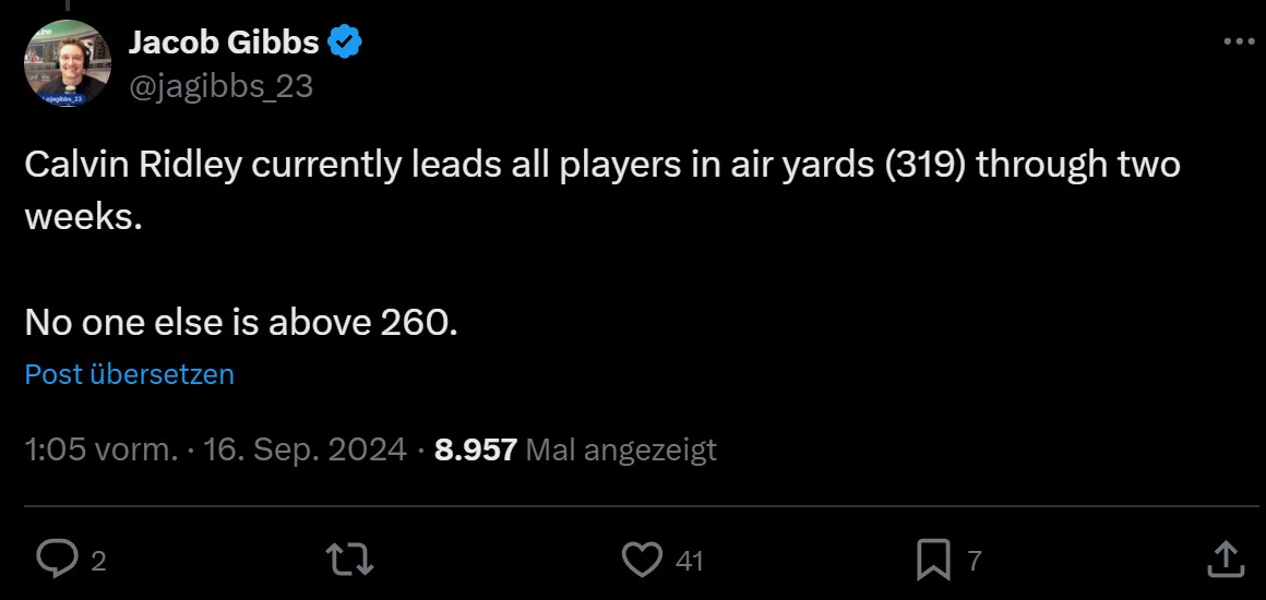 Unter 120 Punkten im Schnitt. Cooper und Sutton je 5 Receptions bei 17, respektive 16 Targets. Deebo kaputt. Mixon angeschlagen. This is fine.