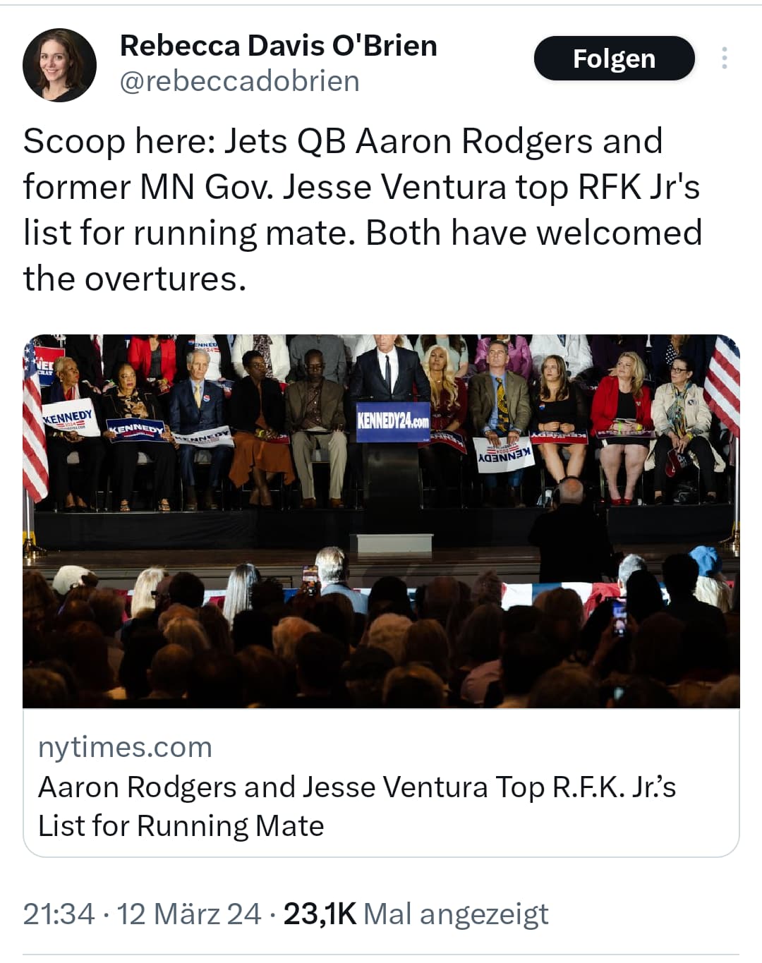 Ich weiß nicht ob du vergessen hast den Grund für die Rodgers Meldung zu posten oder ob das Absicht war. Wie auch immer: