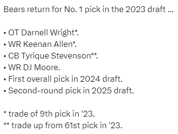 Ist das eigentlich fix, dass die Bears Williams holen? Oder steht da die Option den Pick für ne Menge Gegenwert zu traden und weiter mit Fields zu rollen noch im Raum?