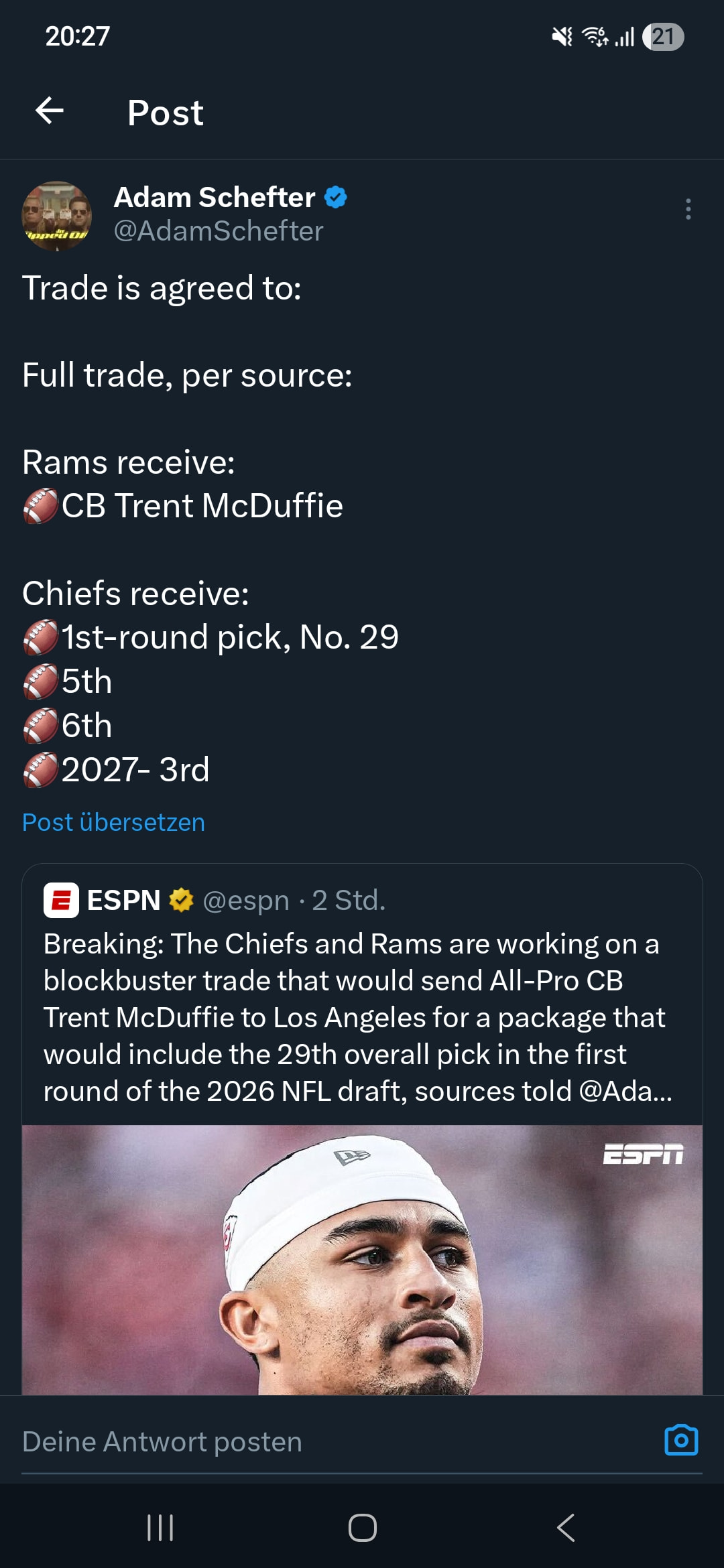 Das würde für einen CB dann Rekordpreis (Zwei 1st, 2nd +4th rd pick) sein, oder?
