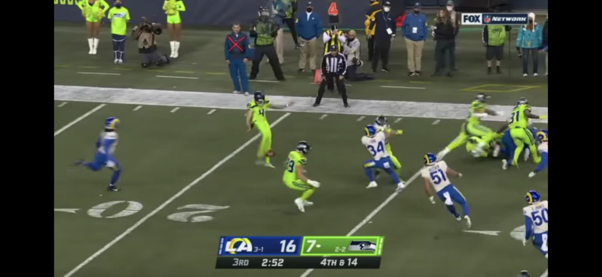 Das war eben der GPE (Greatest Punt Ever) von Michael Dickson von den Seahawks. ![]()