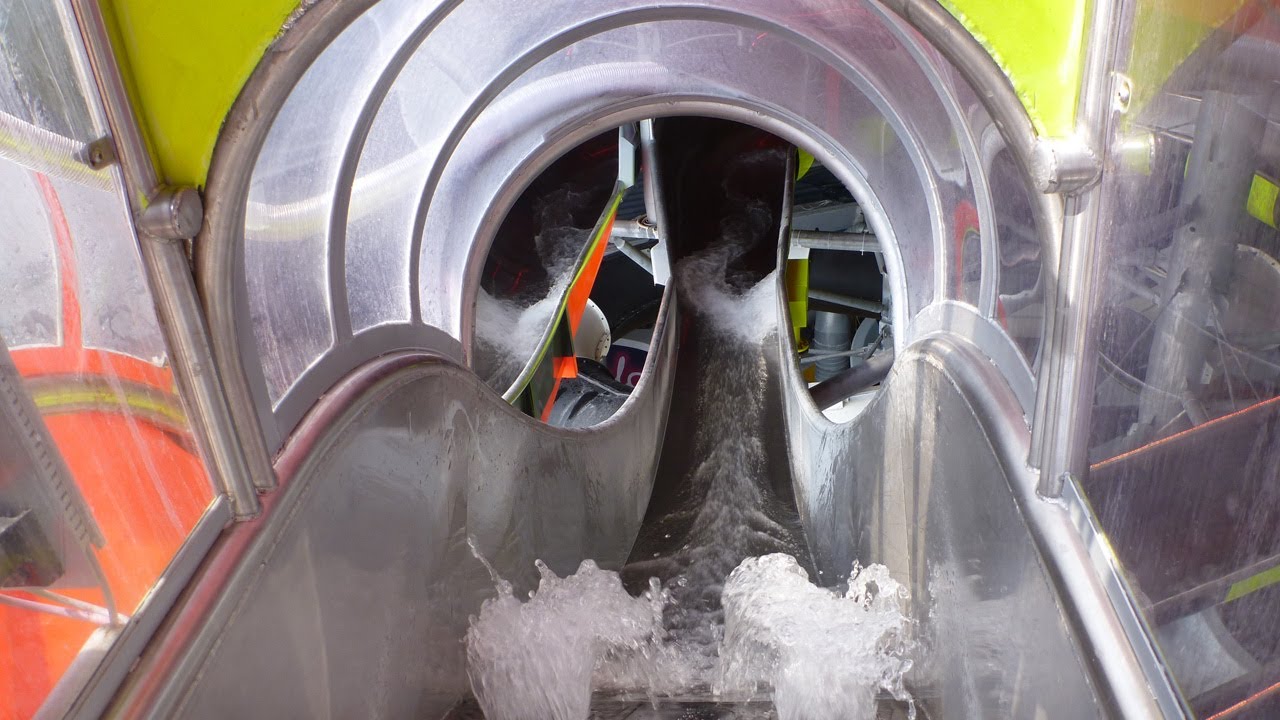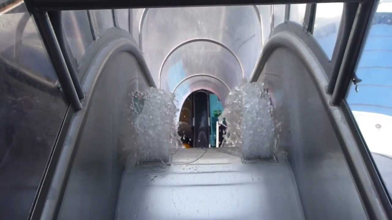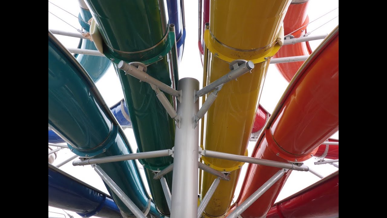 Die Rutsche: Ausgezeichnet als die längste, geschlossene Röhrenrutsche der Welt fährt man hier vom obersten Punkt des Turms mit einem Reifen den Kanal hinunter. Es gibt kein Zwischenbecken oder ähnliches, man fährt also bis zum Ende durch.