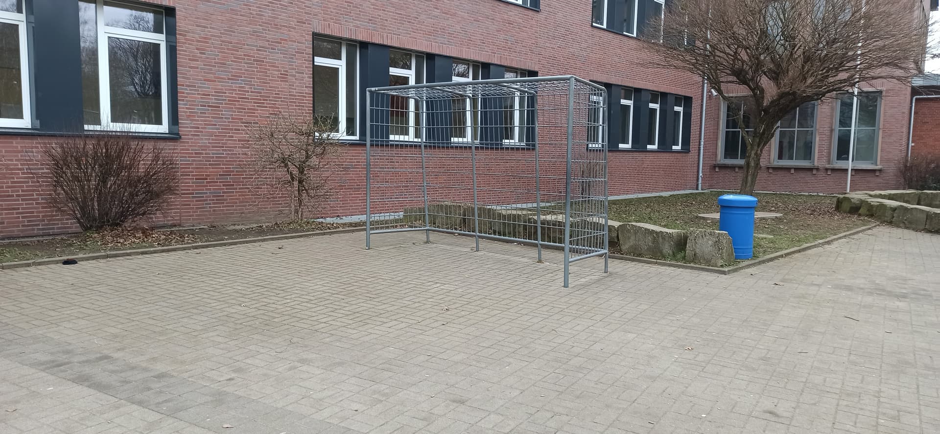 Nun: da passt wirklich ein Ball drunter her und an dieser Grundschule gibt es mit Sicherheit auch noch weichere bzw kleinere Bälle.
