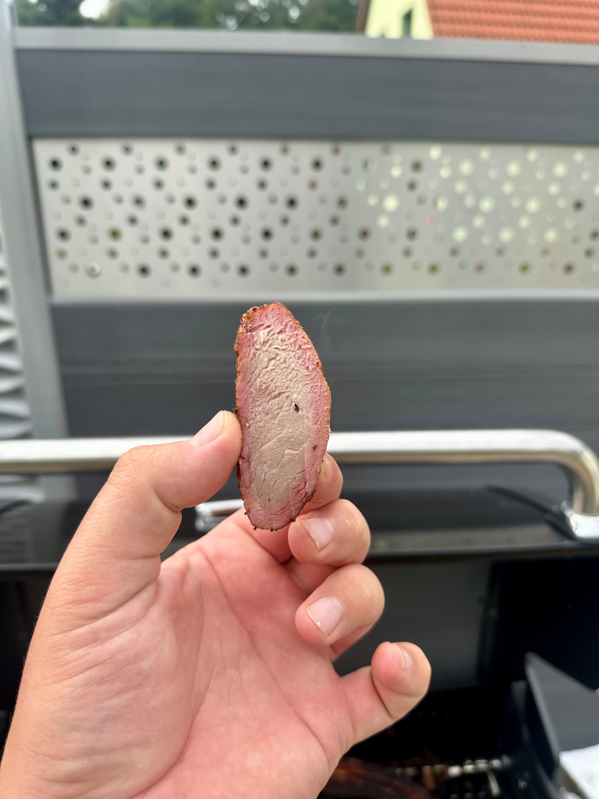 Am Freitag das erste Mal Whole Chicken auf dem Smoker gehabt. 120 Grad, 90 Minuten, bis 74 Grad KT. Wow.