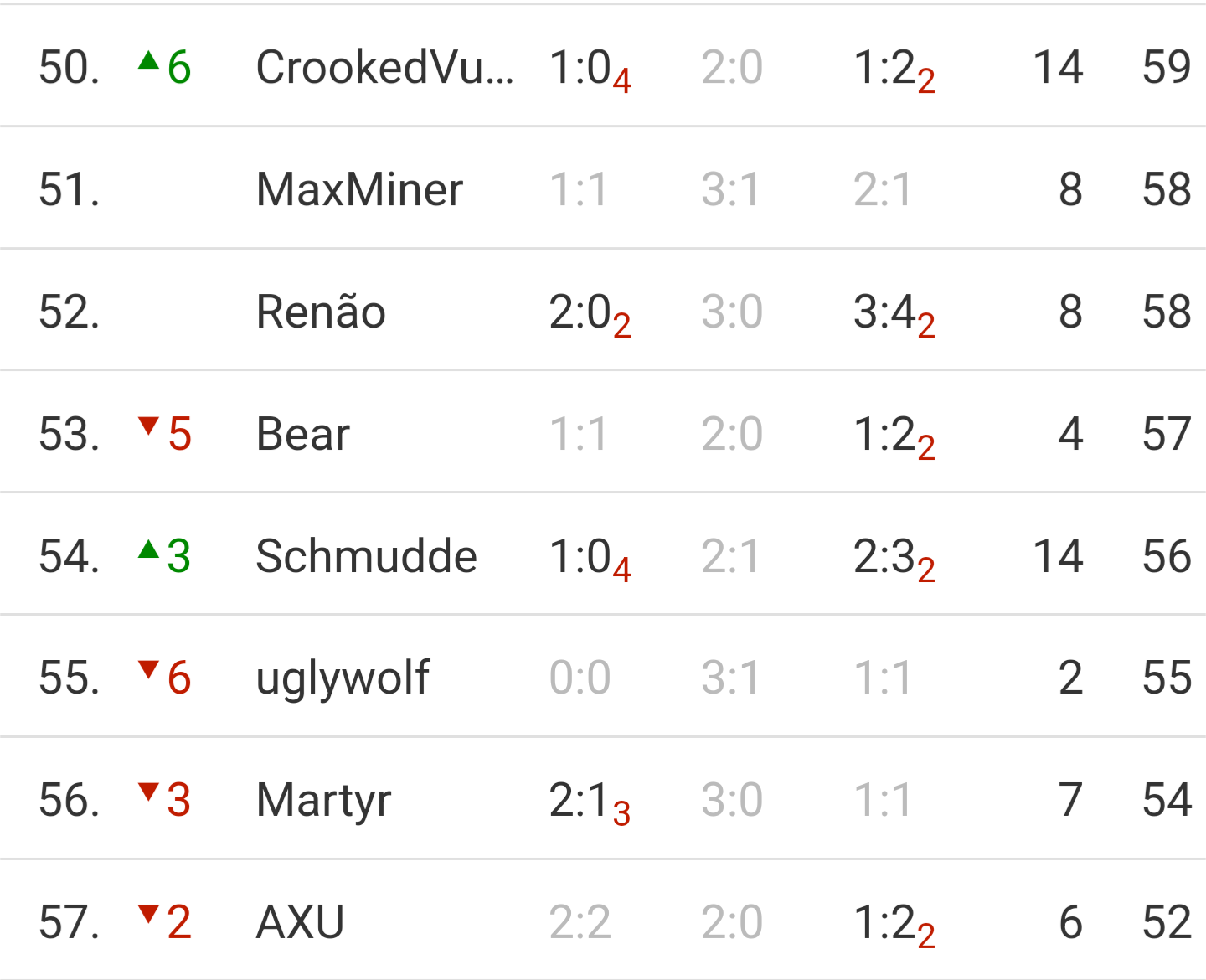 Ich klebe mit meiner puren Tippspielkompetenz einfach an Platz 52. Hauptsache vor @mille_1OOO bleiben, wenngleich ich glaube, dass er mich noch kriegt ![]()