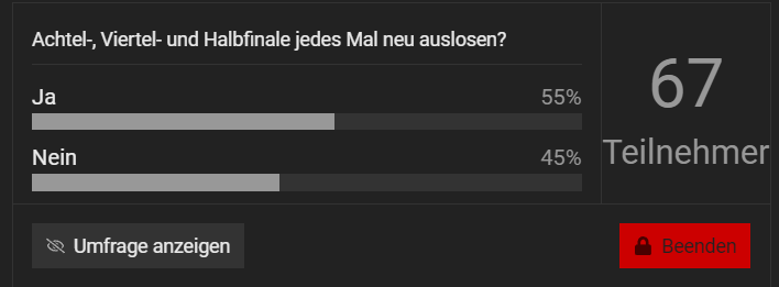 Soooooo, Freunde der Sonne! Die letzte Runde der Play-Offs steht bevor, danach geht es dann weiter im Turnierbaum. Da das Volk aber entschieden hat:
